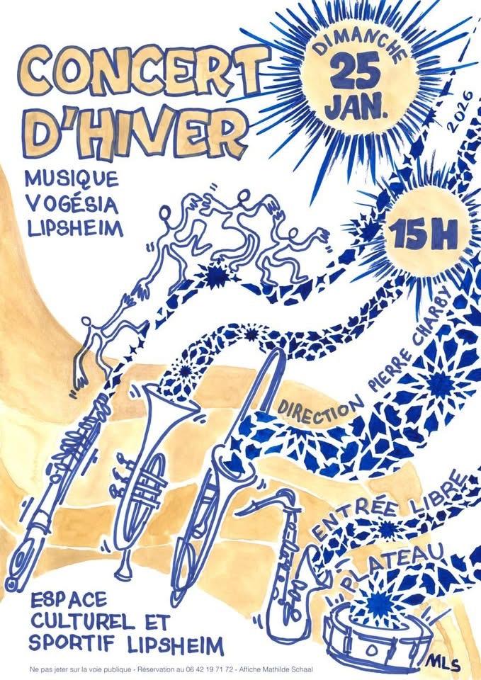 Concert d’hiver proposé par la Vogesia. 25 janvier à 15h. Espace Culturel et Sportif de Lipsheim. Réservations au 06 42 19 71 72