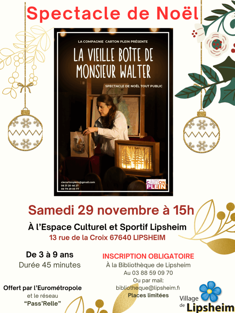 A l’issue du spectacle un goûter sera proposé par l’EVS aux enfants ainsi qu’un atelier « Parents – Enfants » animé par Aline BACHMANN.
